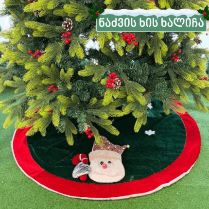 დეკორატიული ხალიჩა ფარავს ნაძვის ხის რკინის ფეხს და მეტ სილამაზეს მატებს ნაძვის ხეს