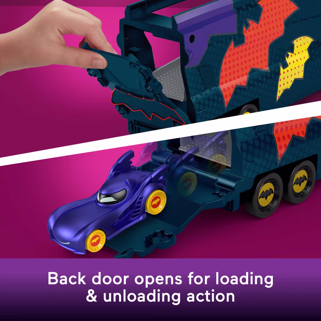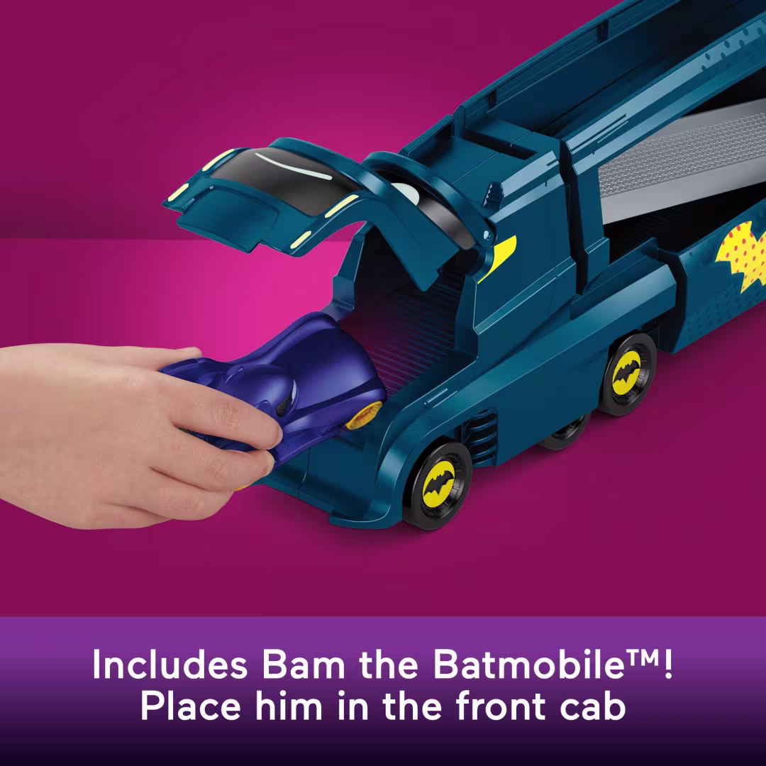 შეარჩიეთ Fisher-Price Batwheels Bat-Big Rig სათამაშო და აჩუქეთ თქვენს პატარას ბეტმენის სამყაროს გრანდიოზული გართობა! ბეტმენის სატვირთო გადამზიდავი Mattel-ისგან შექმნილია DC Batwheels სერიის ფანებისთვის და მზადაა უმასპინძლოს მთელ ბეტმობილების გუნდს.